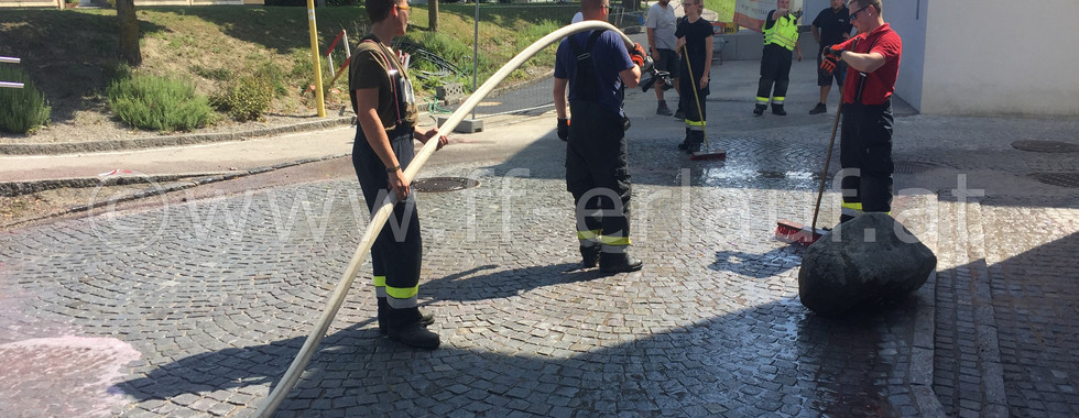 Unsere Aufgabe bestand darin, die auslaufende Farbe aufzufangen und im Anschluss die Fahrbahn zu reinigen.